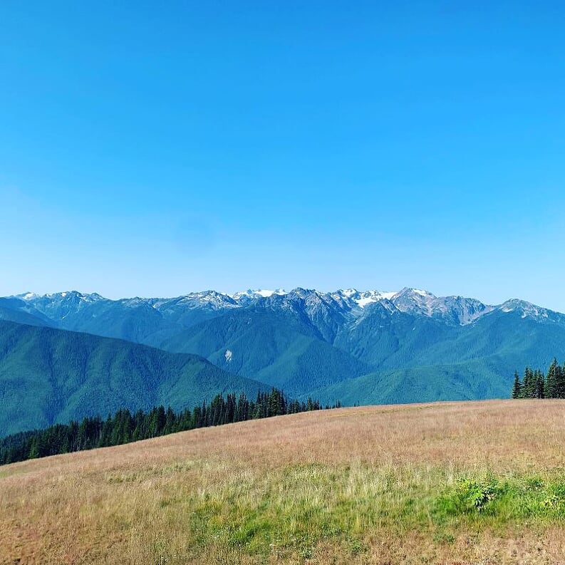 Sadly the Day Lodge burned down in 2023 (see Updates page for more info) so there will not be a building at the top. There are trailers with flush toilets and sinks, a snack and welcome station, and several volunteers to help celebrate your accomplishment and answer questions about the area. There will also be a professional photographer taking summit photos against the backdrop of the stunning Olympic Mountain range. If you’ve left yourself time you can take a short walk up Sunrise Hill to view the Straits of Juan de Fuca and Canada beyond. Just remember to depart the summit by 11:30-11:45 am to ensure that you’ll be off Hurricane Ridge Road by noon.