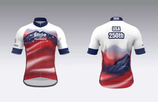 Our 2026 Ride the Hurricane jersey celebrates the 250th anniversary of the United States. The colors of the flag create a design inspired by the heritage, rugged terrain, and natural beauty of Olympic National Park. Red, white, and blue have long stood for the ideals of valor, purity, vigilance, perseverance, and justice: timeless ideals to which we should always aspire. This design honors a natural heritage that belongs to all of us, and the belief that we can ride together in a shared spirit of challenge, connection, and love for the land that we share.