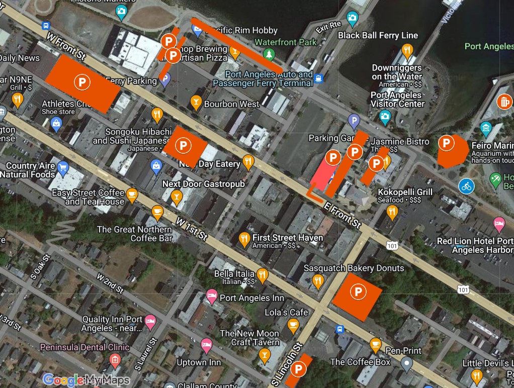 - Bike Corral – If we get enough interest we’ll have secured, attended bike parking after the ride from 1pm to 5pm in a parking lot across from the Coho Ferry dock