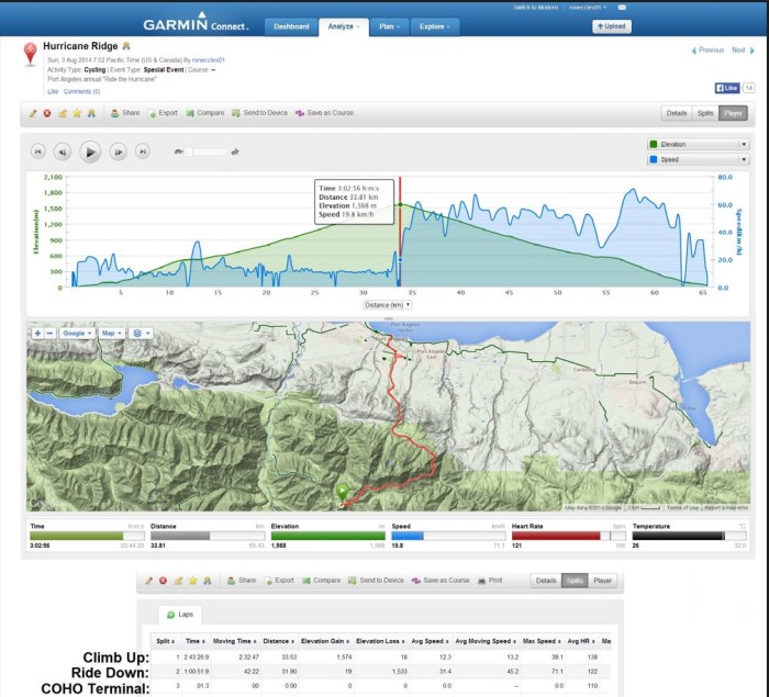 Another look at elevation gains, distances, and an overhead view of the route on this Garmin map, courtesy of Ron Eccles