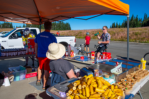 Mile High Summit Support Station – 19.8 miles from the ride start (closes at 11:30 am), sponsored by the Port Angeles Chamber of Commerce. Bike Mechanic, Chocolate Milk, water, heartier snacks, sinks and toilets. Please note that the Day Lodge is no longer there due to a tragic loss from a fire.